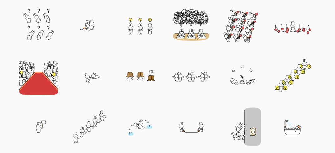 여러마리의 토끼가 통일된 동작을 하기때문에 어떤 표현인지 바로 알 수 있음