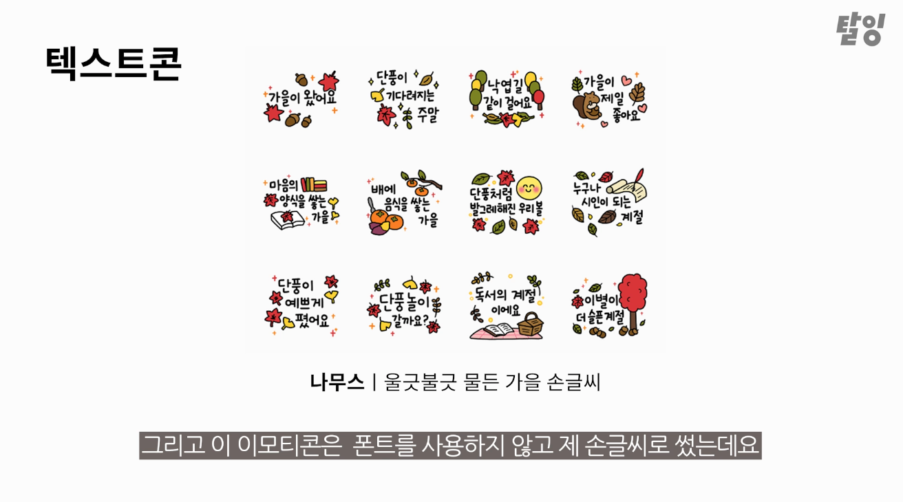 이번에는 캐릭터 없이 메시지만 있는 텍스트 이모티콘에 대해 알아보았다.