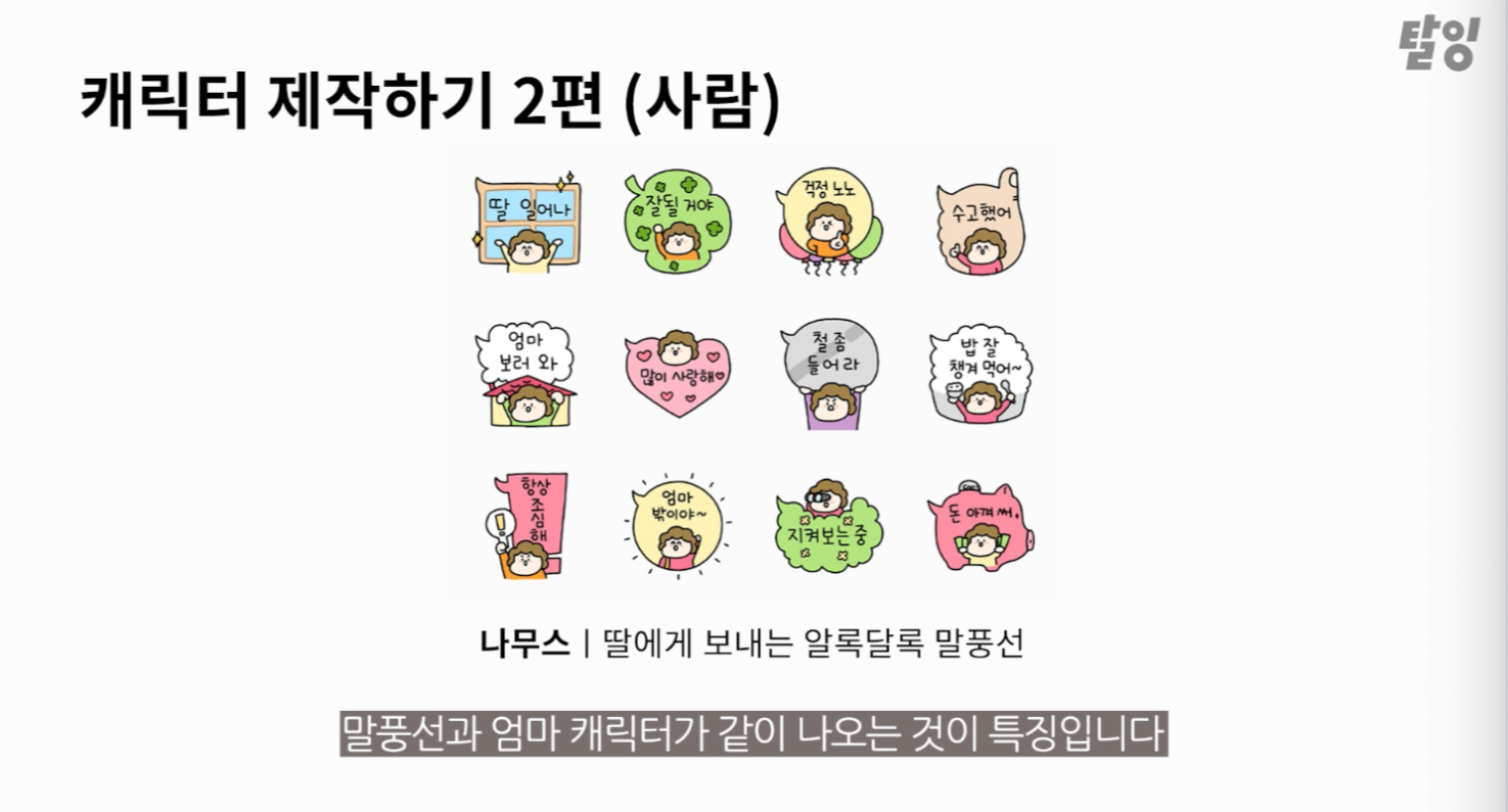 말풍선과 엄마캐릭터가 나오는 이모티콘으로