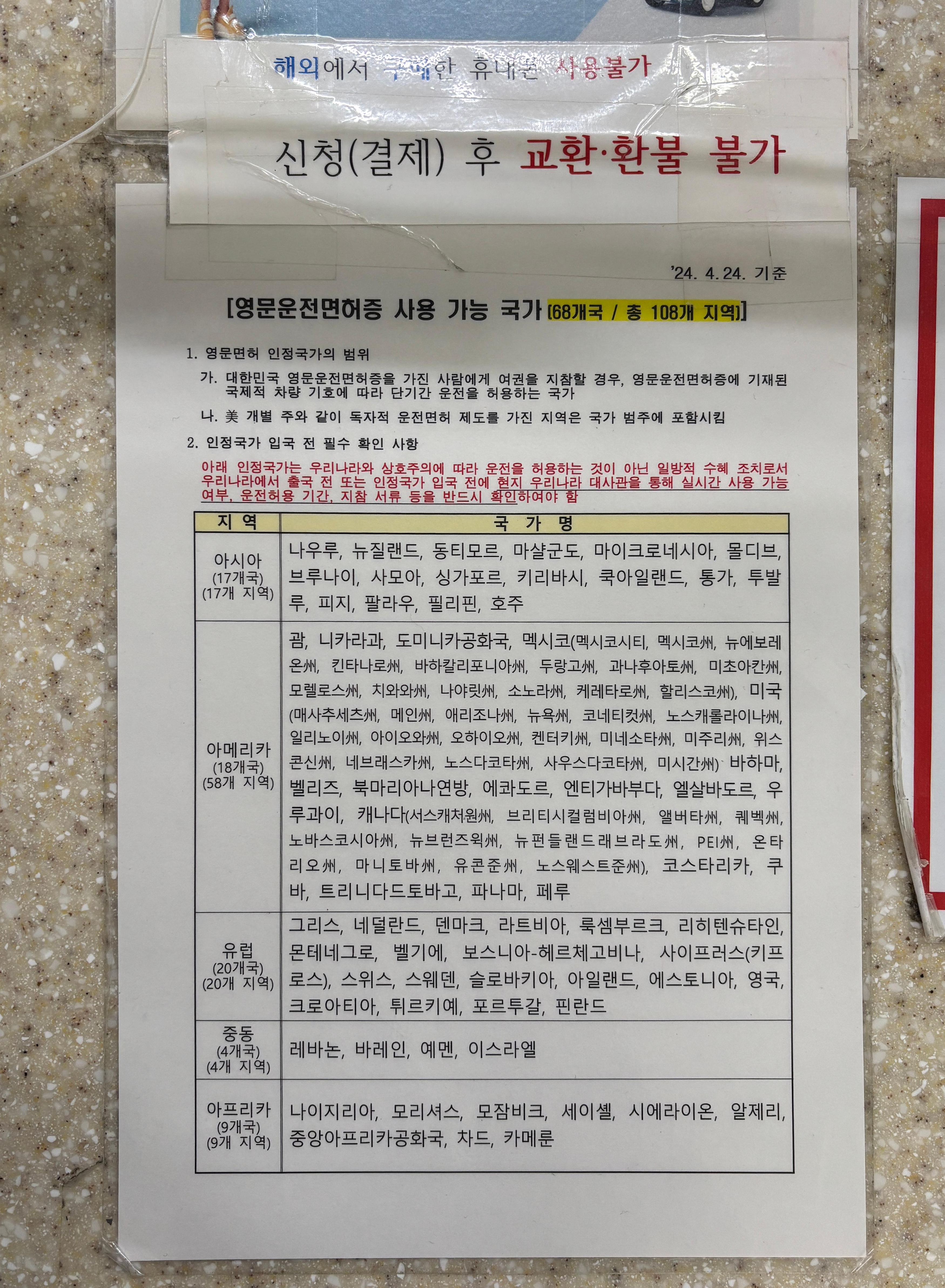 출국 전 또는 인정국가 입국 전에 현지 대사관을 통해 실시간 사용 가능 여부 및 운전허용기간과 지침 서류 등을 확인해야 함.