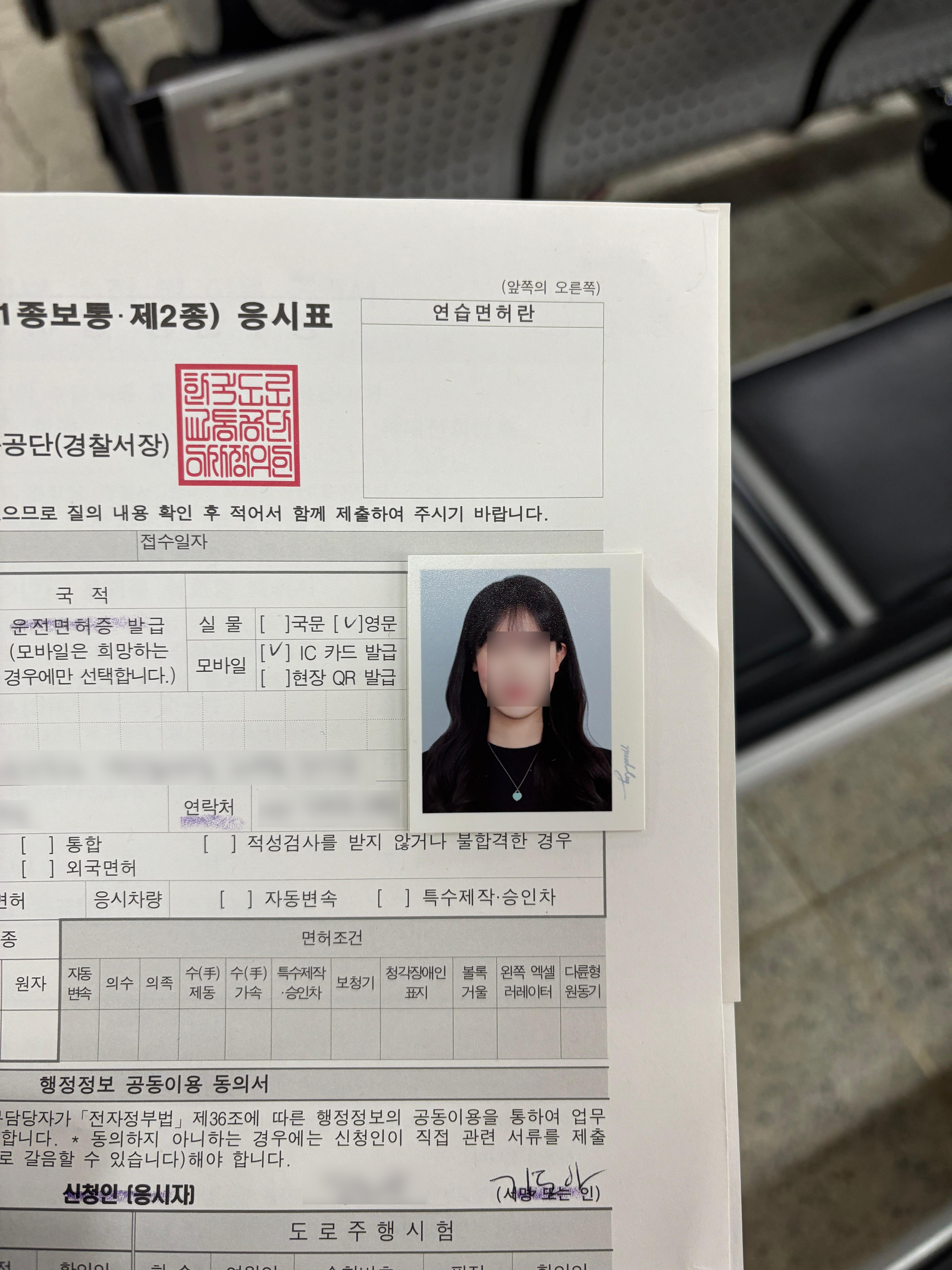 ✅ 기존 면허증, 증명사진(3.5cm × 4.5cm) 2장