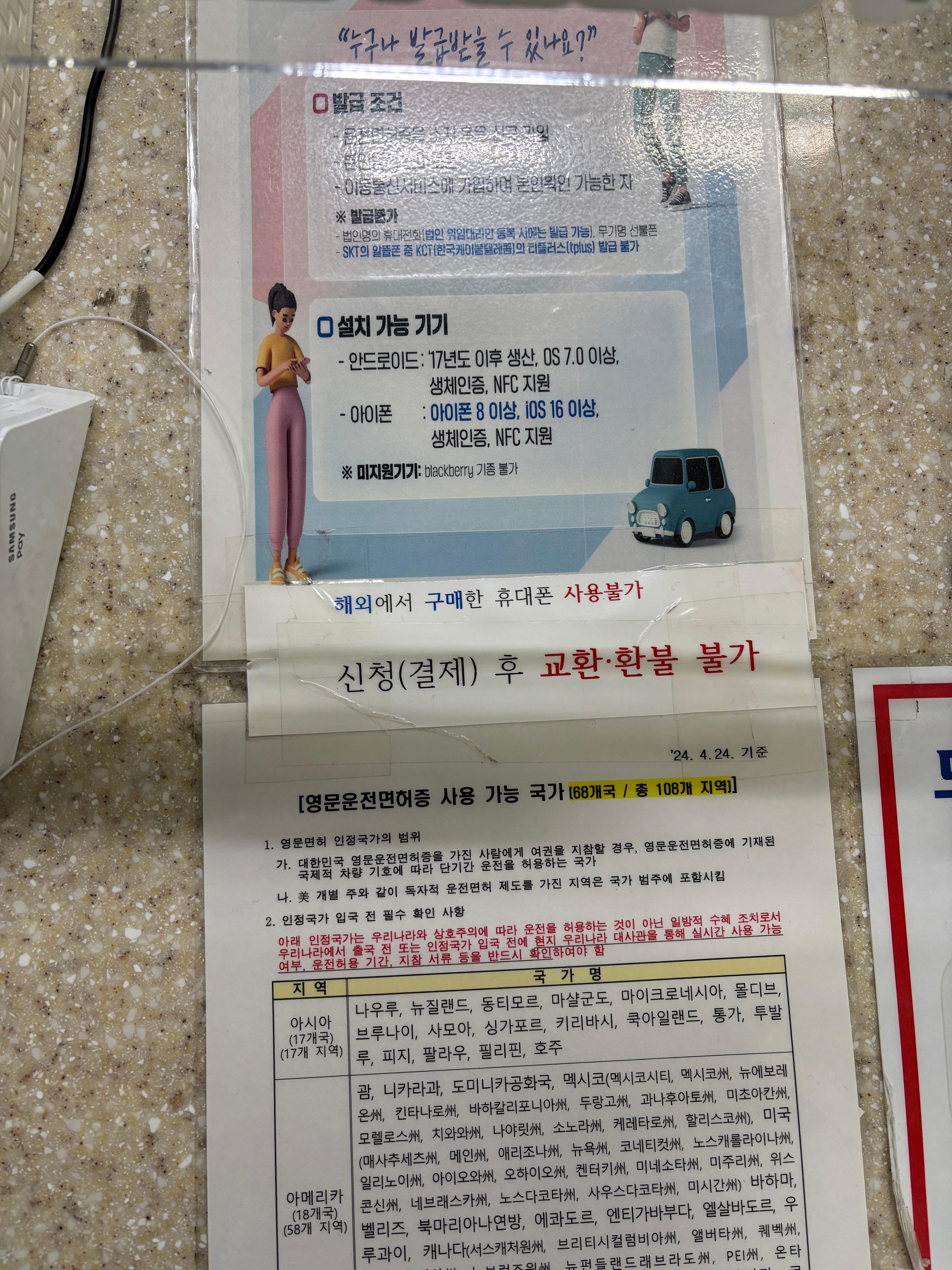 • 필요서류 신분증, 기존 면허증, 증명사진(3.5cm × 4.5cm) 2매