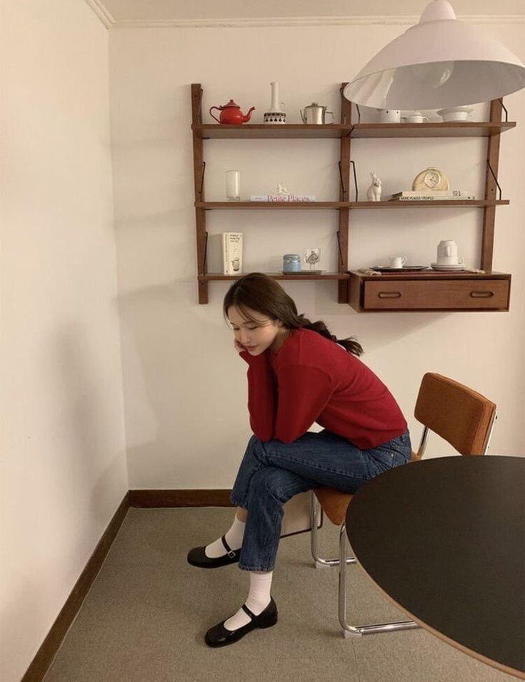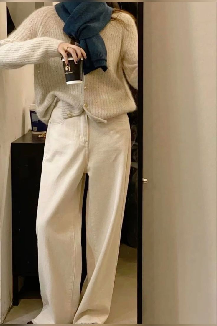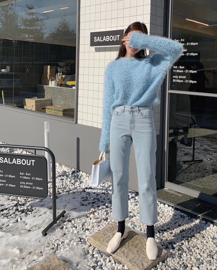 폭닥한 니트 제품과 매치한 꾸안꾸 코디