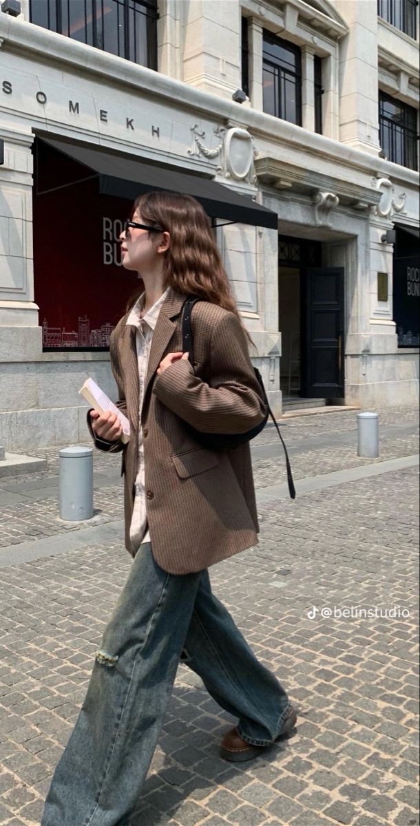 요즘에는 이렇게 편해 보이는 오버사이즈의 블라우스와 와이드진의 조합도 좋고