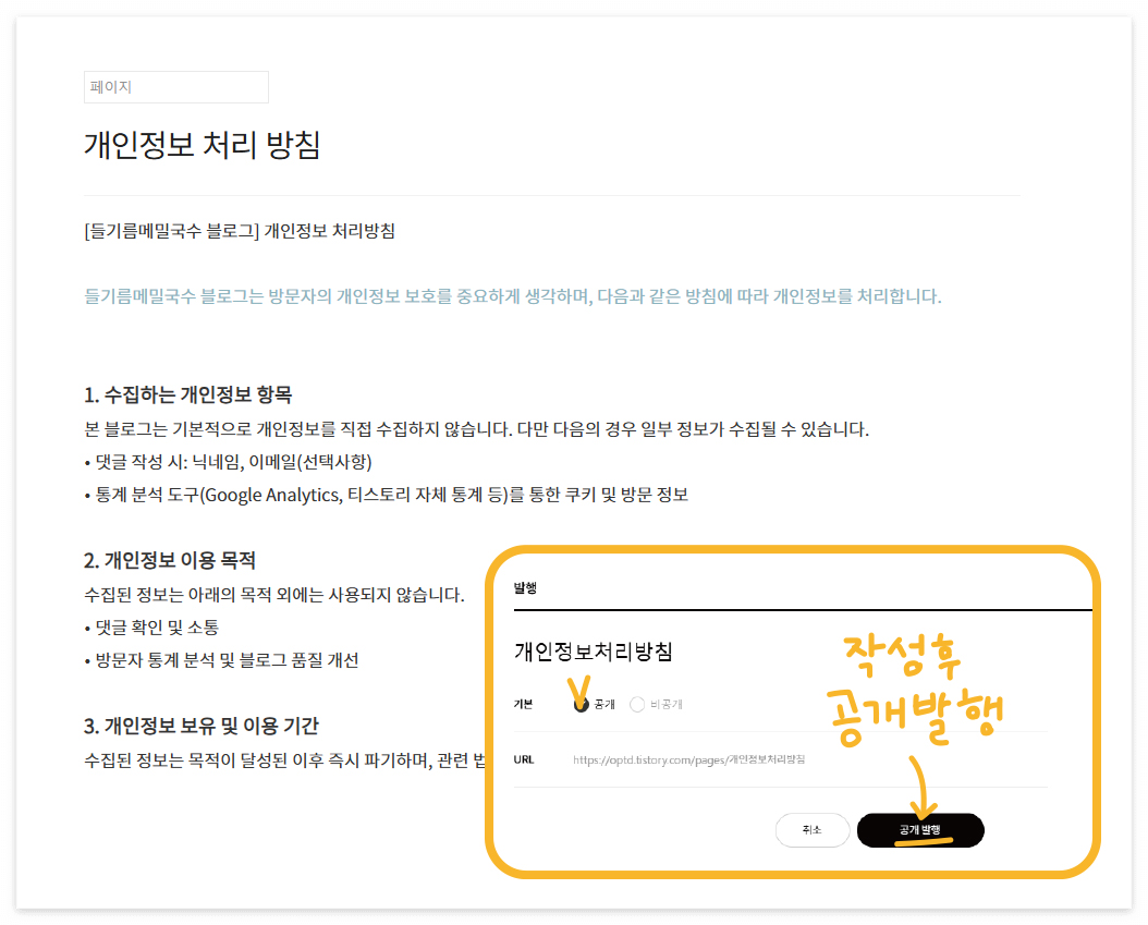 티스토리 블로그에 개인정보처리방침 적용하기
