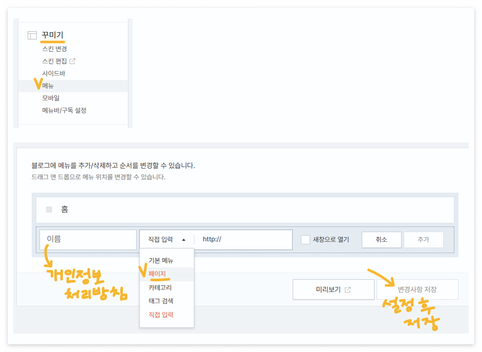 블로그 메뉴에 추가하기