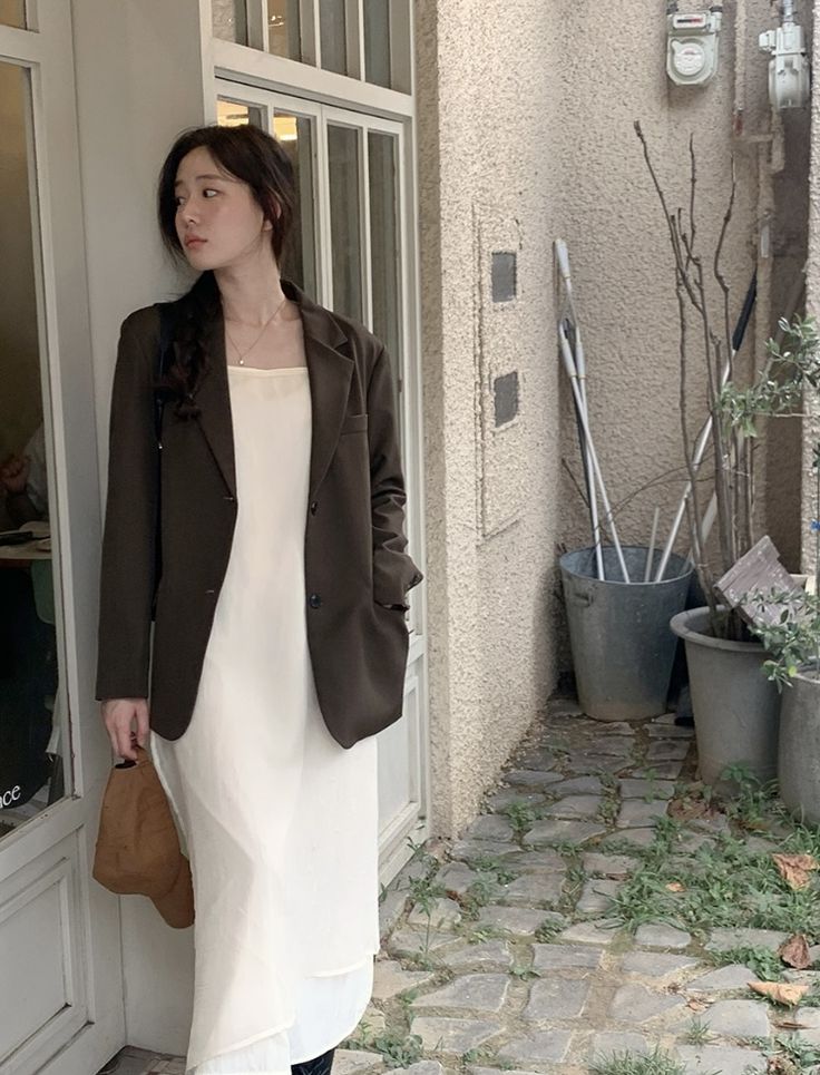 • 슬립 드레스 + 가벼운 린넨 블레이저