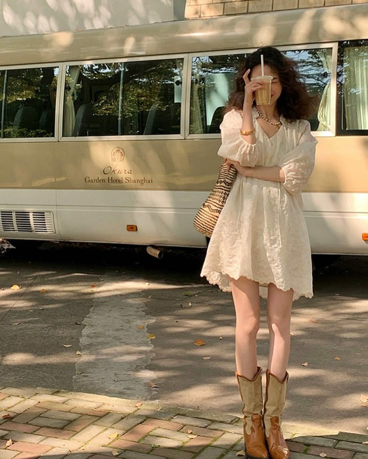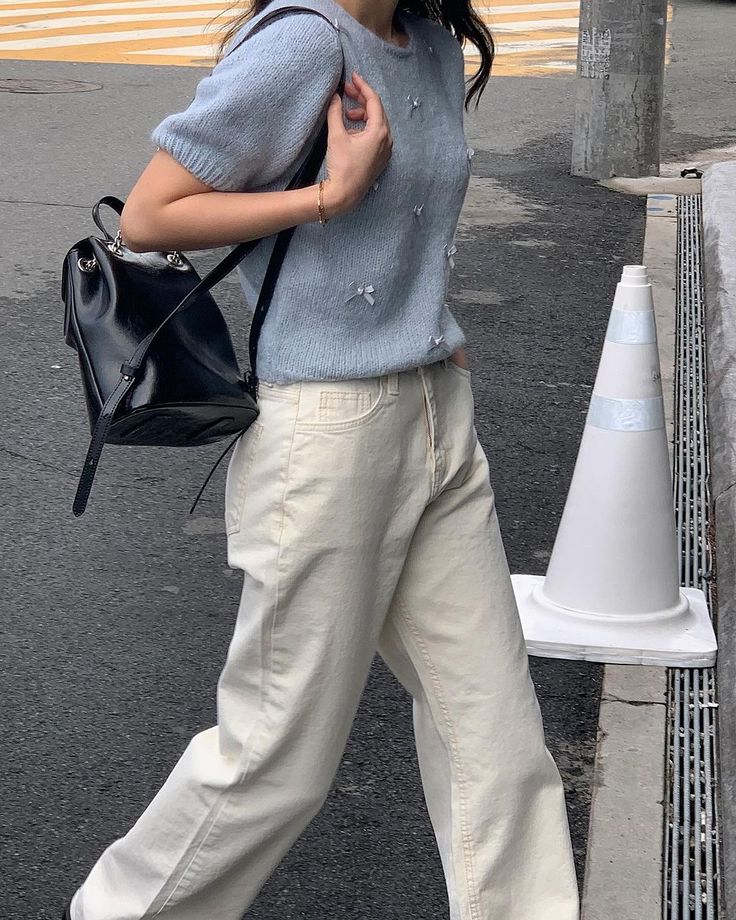 크로스백 대신 프렌치 스타일 토트백을 선택하면 성숙한 분위기를 연출할 수 있습니다.