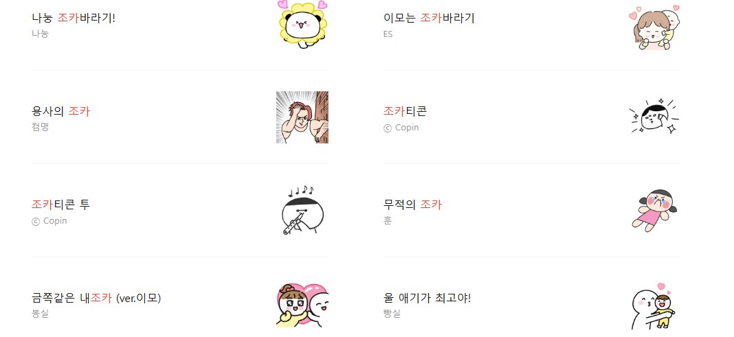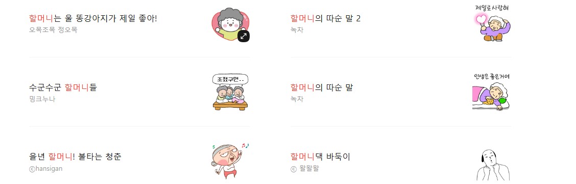 부모님은 물론 형제, 자매, 할머니, 그리고 조카 관련한 이모티콘까지 다양하게 나와있는 것을 볼 수 있었다.
