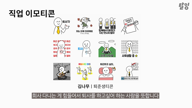퇴사를 원하는 사람들을 위한 재미와 공감을 더한 이모티콘으로 볼 수 있다