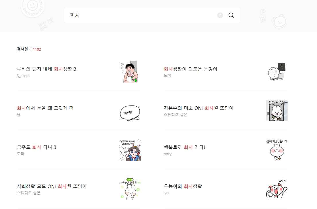 그 중 하나를 골라 이모티콘샵에서 검색 해보며 구체화시켜가는것이 좋다.